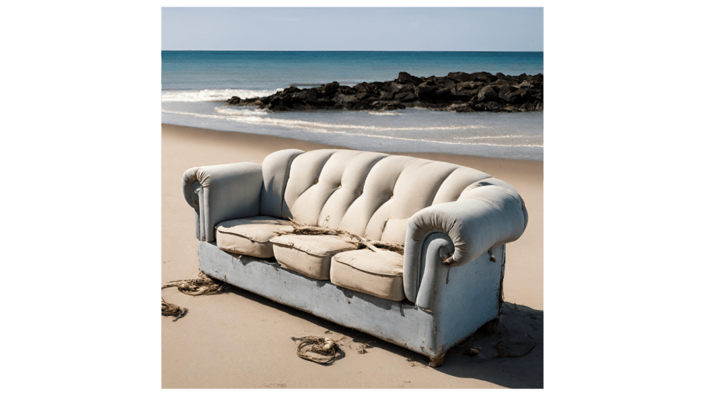 Welcome to Australia – oh, but mind the pokey bits! We’ve been putting off getting her reupholstered.